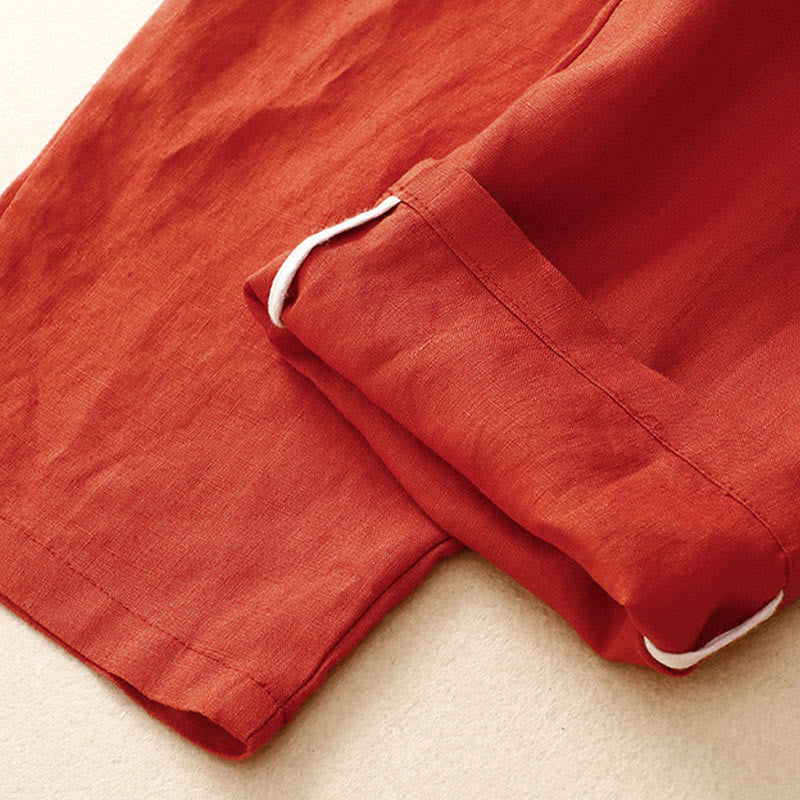 Buddha Stones Vintage High Waist Lace-up Cotton Linen Harem Pants With Pockets - Tomato - US8-10,UK/AU12-14,EU40-42 (2XL) - image 7