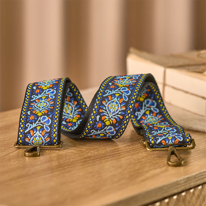 Buddha Stones Boho Navy Blue Flower Geometric Adjustable Handbags Crossbody Shoulder Bag Straps Replacement - Navy Blue - 70-135cm*5cm - image 0