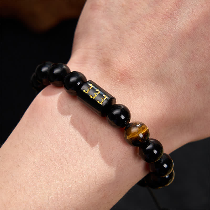 - Material: Black Obsidian, Glass Bead, Tiger Eye, Rope