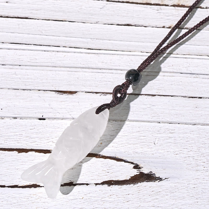 Buddha Stones Carving Koi Fish Pink Crystal Indian Agate Amethyst Warmth Prosperity Necklace Pendant - White Crystal(Pendant Size: 15*40mm) - image 48