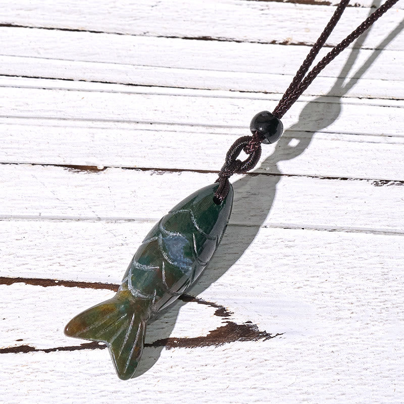Buddha Stones Carving Koi Fish Pink Crystal Indian Agate Amethyst Warmth Prosperity Necklace Pendant - Unakite(Pendant Size: 15*40mm) - image 58