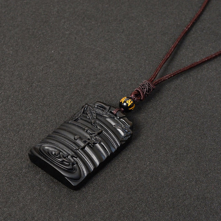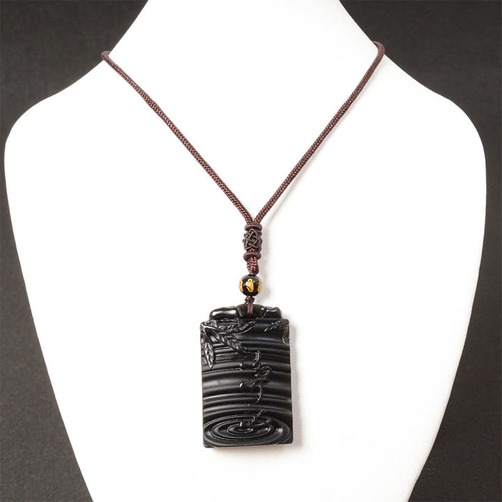Buddha Stones Natural Black Obsidian Bamboo Fulfillment Necklace Pendant