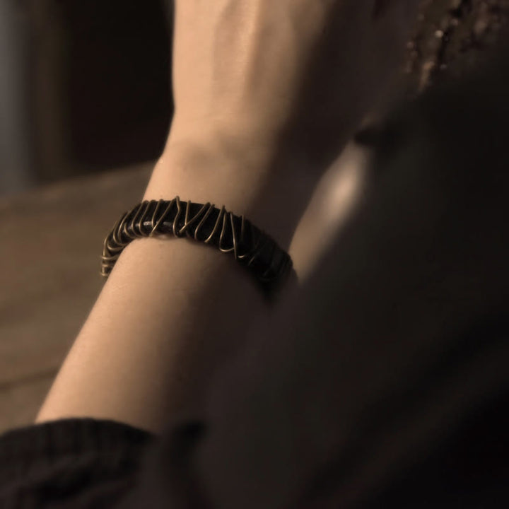Simple and Mature: Black represents simplicity, classicism and maturity. Wearing a black leather bracelet can show personal taste and style, making the wearer look more mature and confident.