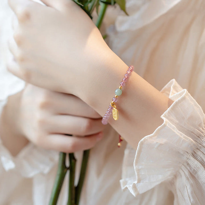 - Bead Size: Strawberry Quartz/Garnet 5mm, Jade 6mm