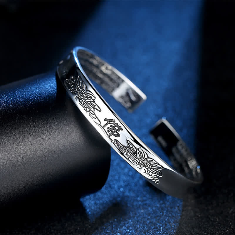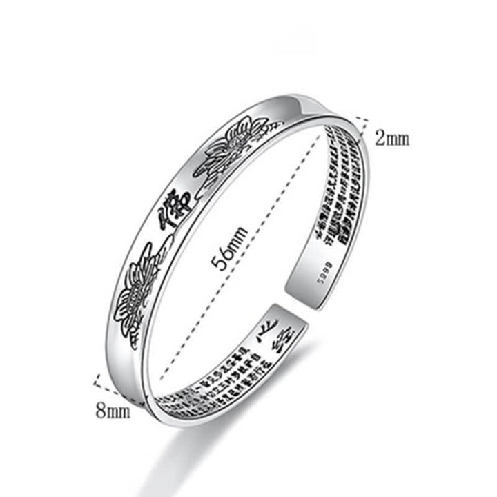 Heart Sutra Mantra Lotus Peace Copper Cuff Bracelet Bangle