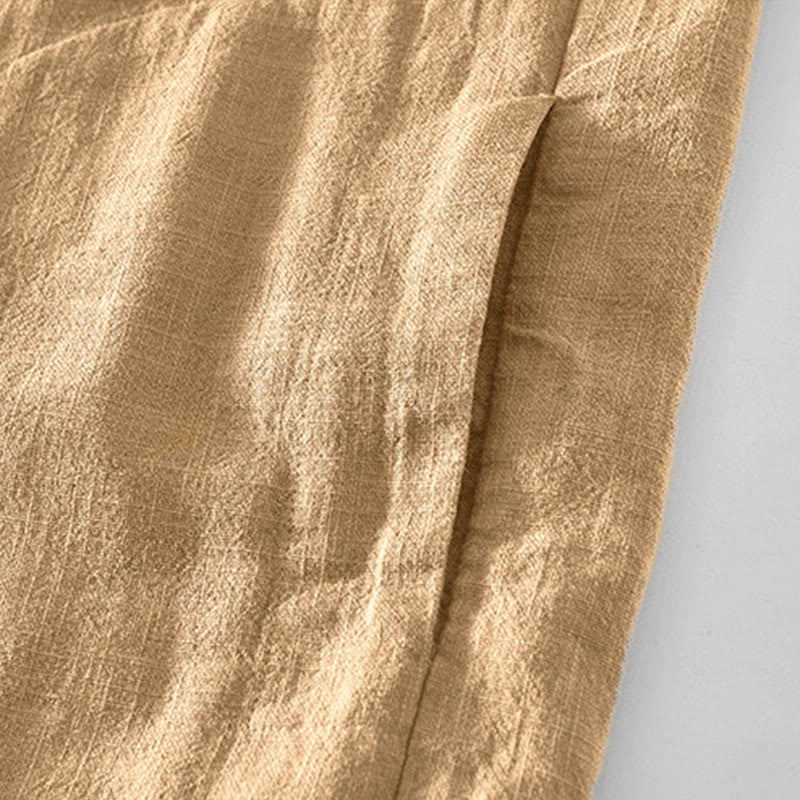 Buddha Stones Commute Plain Simple Buttons Design Men's Long Sleeve Ramie Linen Jacket With Pockets