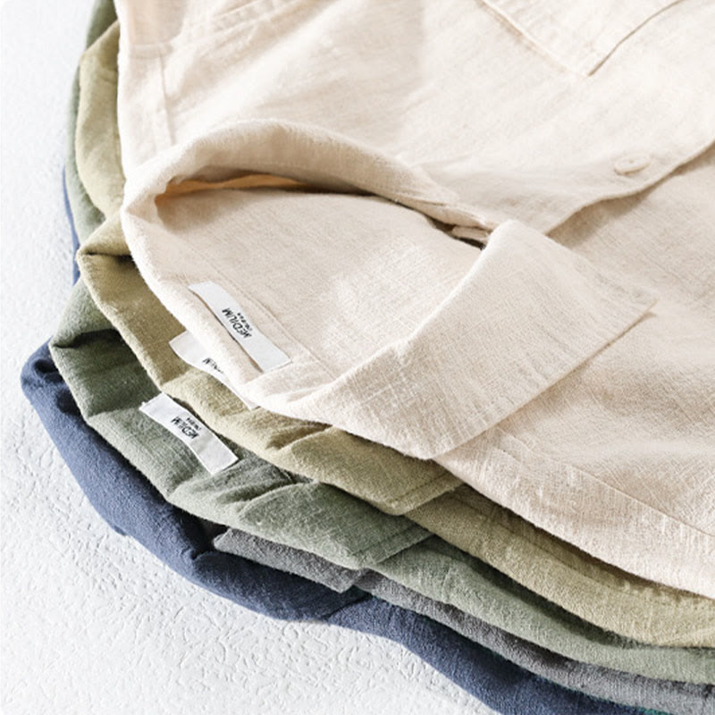 Buddha Stones Commute Men's Plain Buttons Design Cotton Linen Long Sleeve Shirt With Pockets - image 1