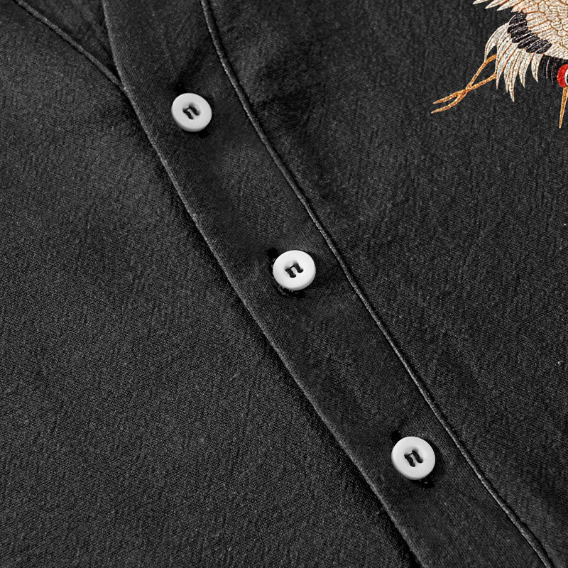 - Design: These men's shirts are adorned with elegant crane and pine tree motifs, symbolizing longevity, good fortune, and hope, adding a unique and meaningful element with an oriental flair to your everyday style.
