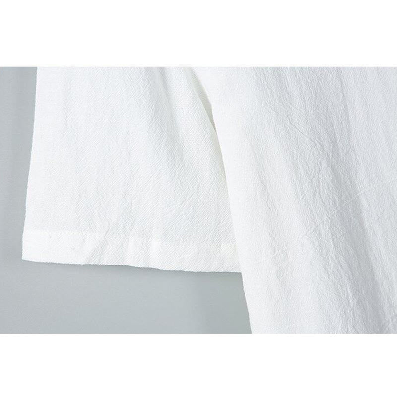 Buddha Stones Daily Printing Solid Color Single Breasted Men's Short Sleeve Cotton Linen Shirt WIth Pockets - White - US/UK/AU46,EU56 (5XL) - image 1
