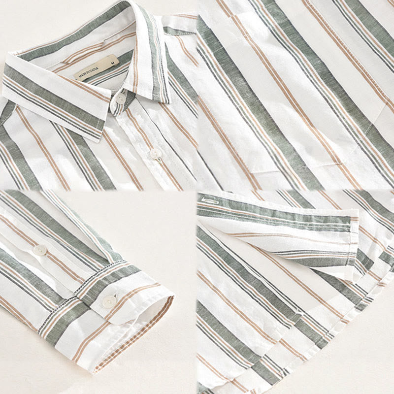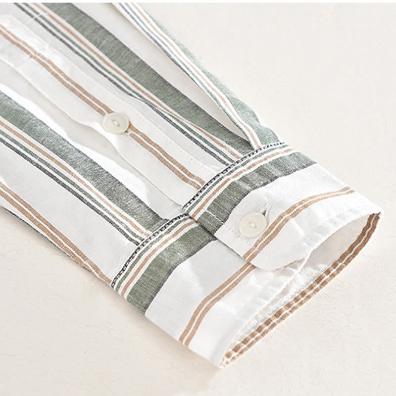Buddha Stones Fall Stripe Decorative Pocket Buttons Down Long Sleeve Three Quarter Sleeve Short Sleeve Men's Cotton Shirt - image 1