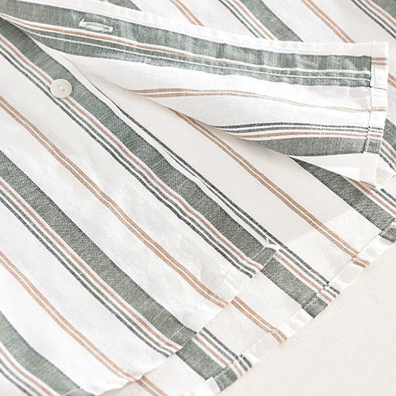 Buddha Stones Fall Stripe Decorative Pocket Buttons Down Long Sleeve Three Quarter Sleeve Short Sleeve Men's Cotton Shirt - Short-Sleeved Green - US/UK/AU42,EU52 (3XL) - image 20
