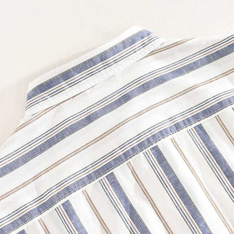 Buddha Stones Fall Stripe Decorative Pocket Buttons Down Long Sleeve Three Quarter Sleeve Short Sleeve Men's Cotton Shirt - image 15