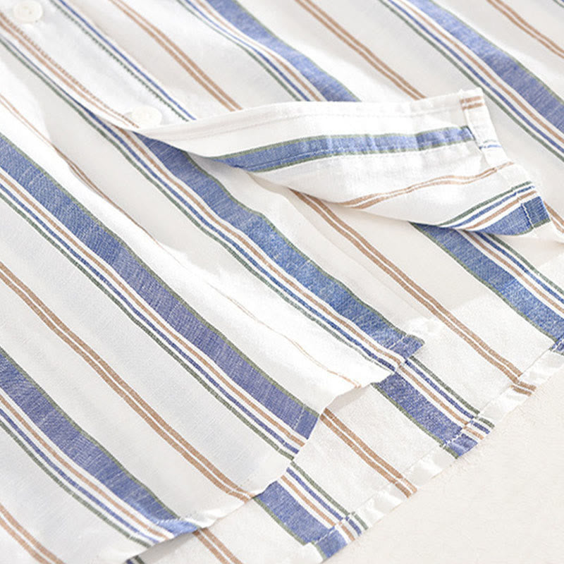 Buddha Stones Fall Stripe Decorative Pocket Buttons Down Long Sleeve Three Quarter Sleeve Short Sleeve Men's Cotton Shirt - image 11