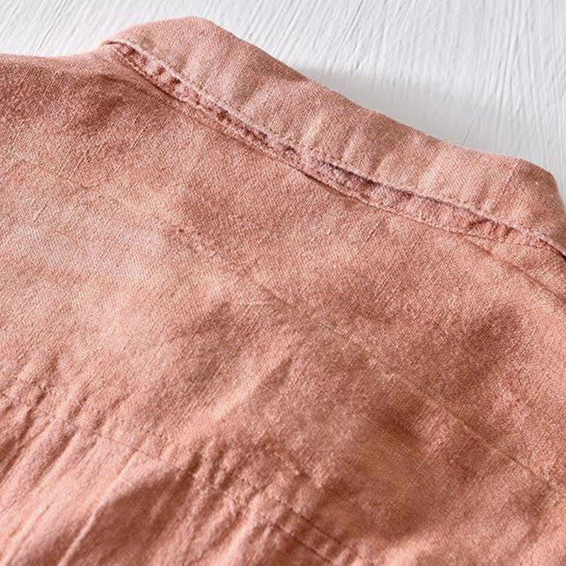 Buddha Stones Simple Design Short Sleeve Lapel Linen Half Button Men's Shirt - Coral - US/UK/AU42,EU52 (3XL) - image 11