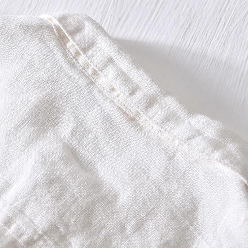 Buddha Stones Simple Design Short Sleeve Lapel Linen Half Button Men's Shirt - White - US/UK/AU42,EU52 (3XL) - image 4