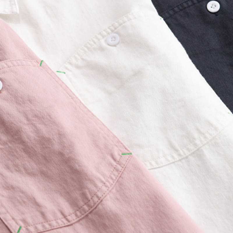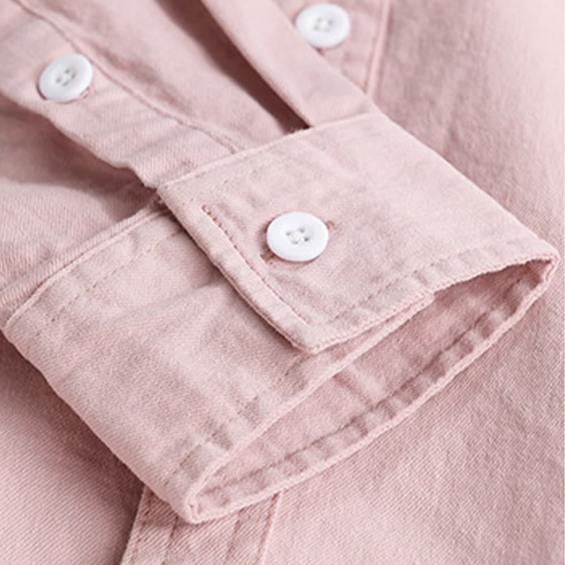 Buddha Stones Solid Buttons Down Decorative Pocket Men's Stand Collar Long Sleeve Cotton Shirt - Pink - US/UK/AU42,EU52 (3XL) - image 0