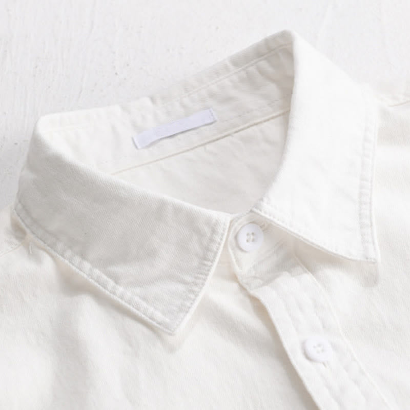 Buddha Stones Solid Buttons Down Decorative Pocket Men's Stand Collar Long Sleeve Cotton Shirt - White - US/UK/AU42,EU52 (3XL) - image 15
