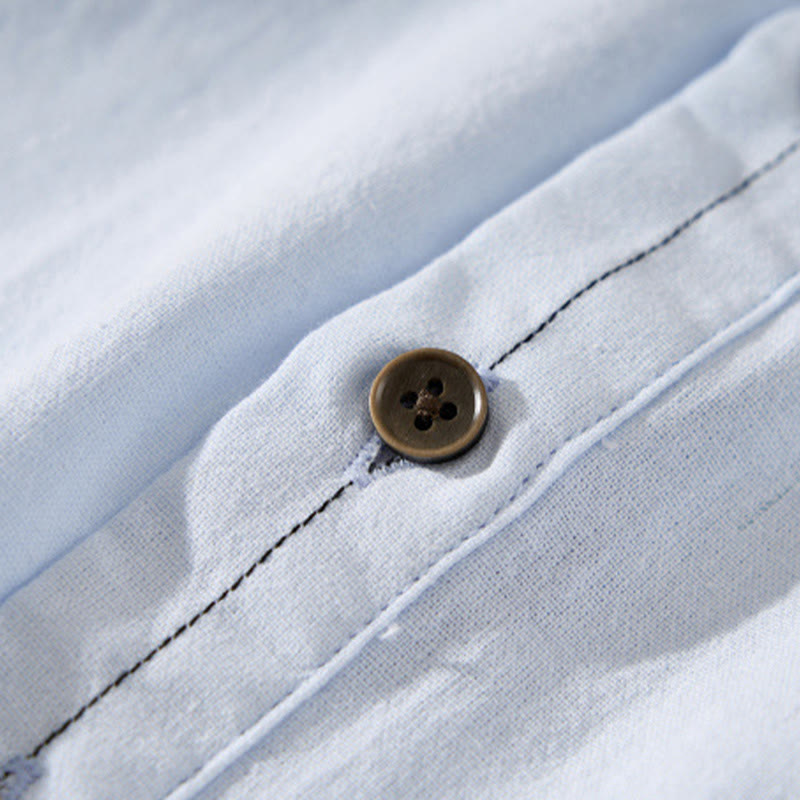 Buddha Stones Summer Solid Men's Half Button Short Sleeve Cotton Shirt
