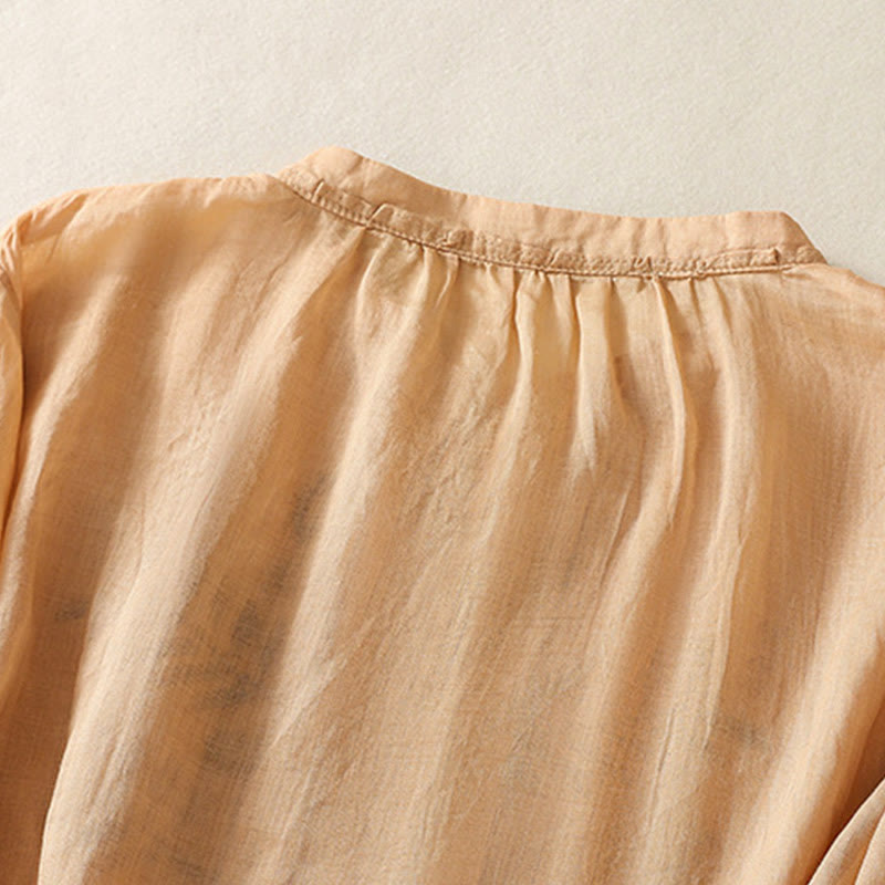 Buddha Stones Casual Artistic Embroidery Leaves Pattern Women's Cotton Linen Three Quarter Sleeve Shirt - image 22