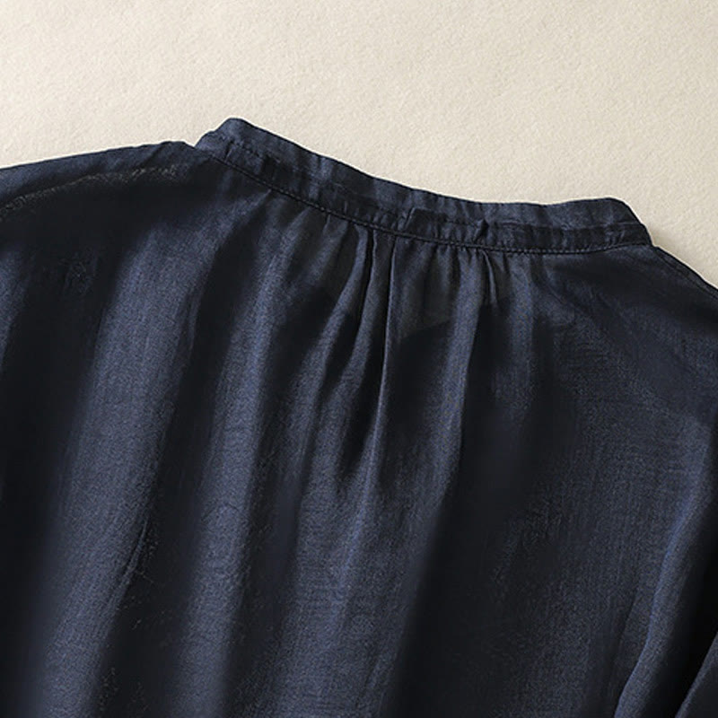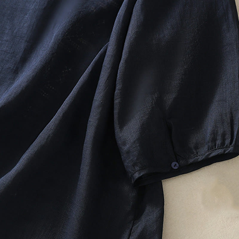 Buddha Stones Casual Artistic Embroidery Leaves Pattern Women's Cotton Linen Three Quarter Sleeve Shirt - MidnightBlue - US8-10,UK/AU12-14,EU40-42 (2XL) - image 8