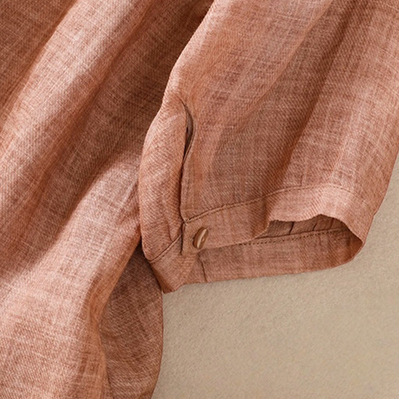 Buddha Stones Casual Daily Plain Button Ruffled Design Stand Collar Women's Cotton Linen Three Quarter Sleeve Shirt - Coral - US8-10,UK/AU12-14,EU40-42 (2XL) - image 15