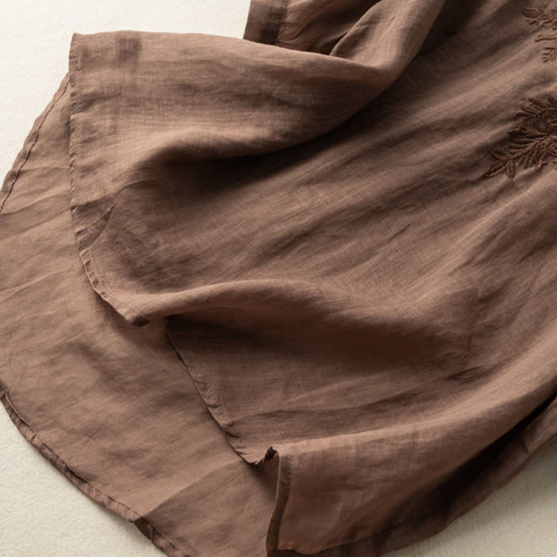 Buddha Stones Casual Embroidery Floral Women's V-Neck Design Half Sleeve Cotton Shirt - SaddleBrown - US12,UK/AU16,EU44 (3XL) - image 0