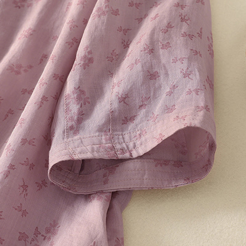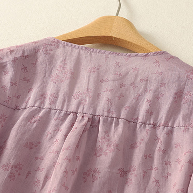 Buddha Stones Casual Floral Print Pattern Three Quarter Sleeve Women's Buttons Shirt - LavenderBlush - US12,UK/AU16,EU44 (3XL) - image 0