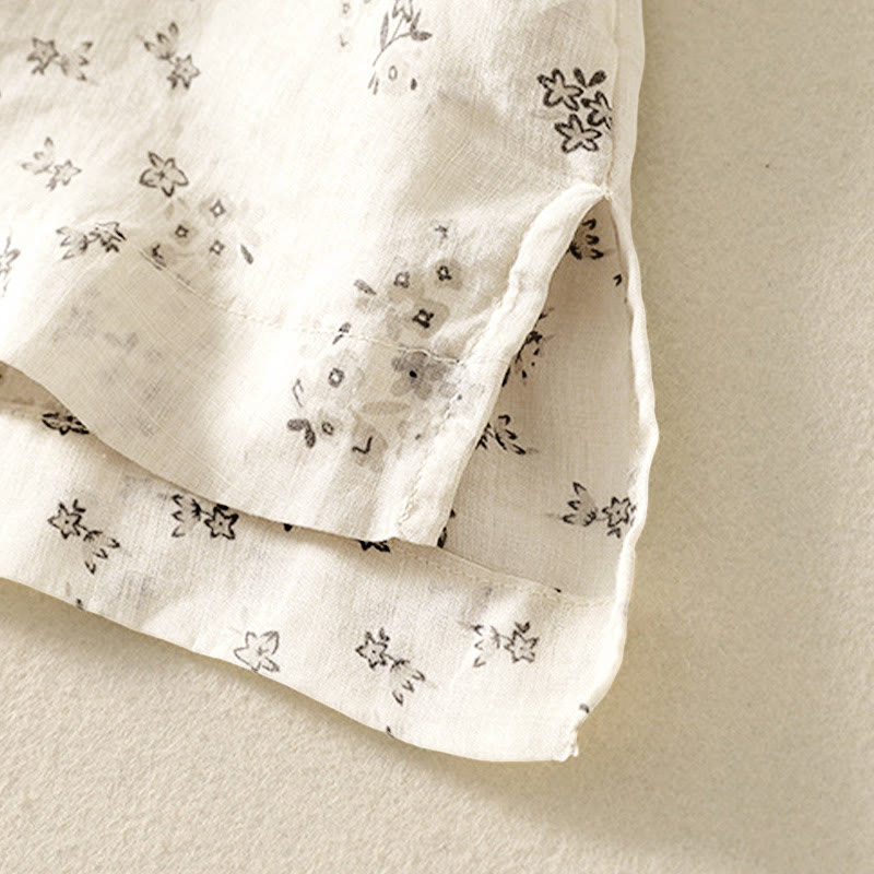 Buddha Stones Casual Floral Print Pattern Three Quarter Sleeve Women's Buttons Shirt