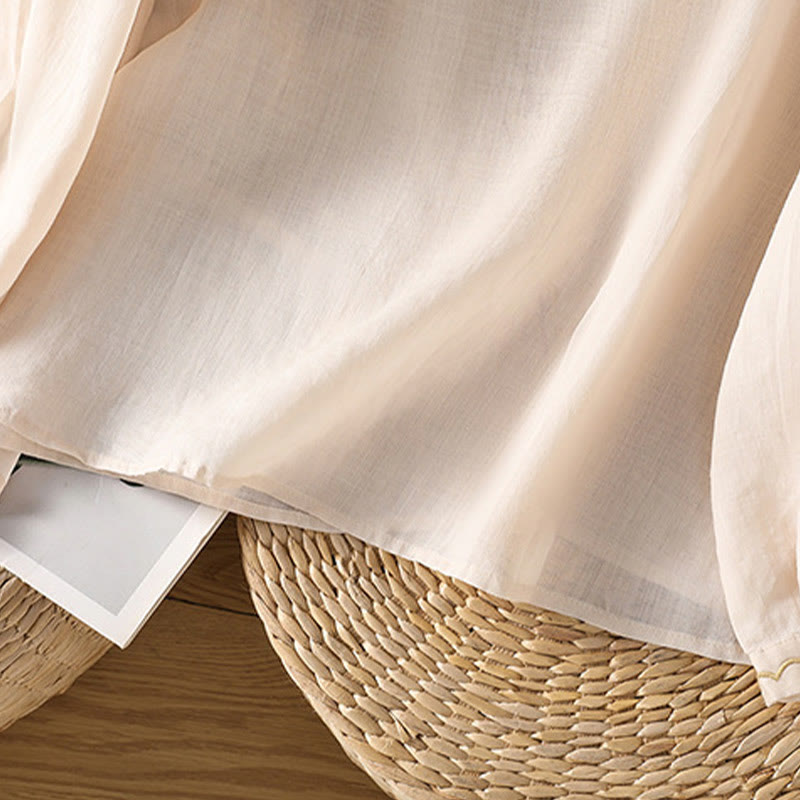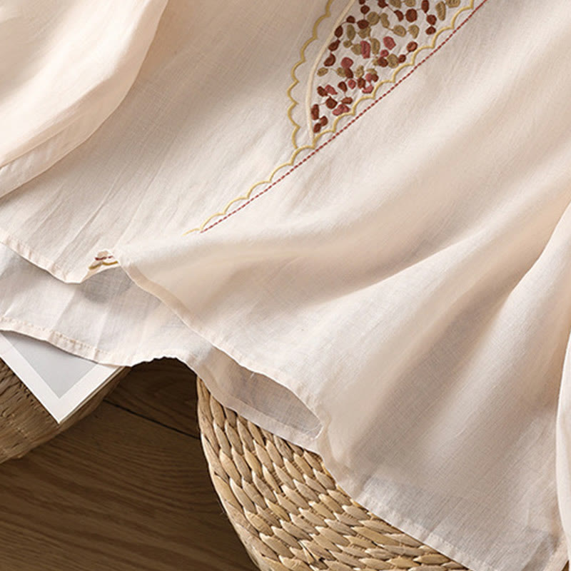 Buddha Stones Ethnic Embroidery Crew Neck Cotton Linen Pullover Clothing - Bisque - US8-10,UK/AU12-14,EU40-42 (2XL) - image 1