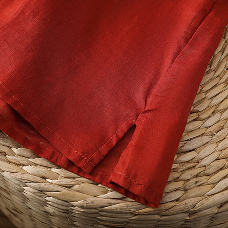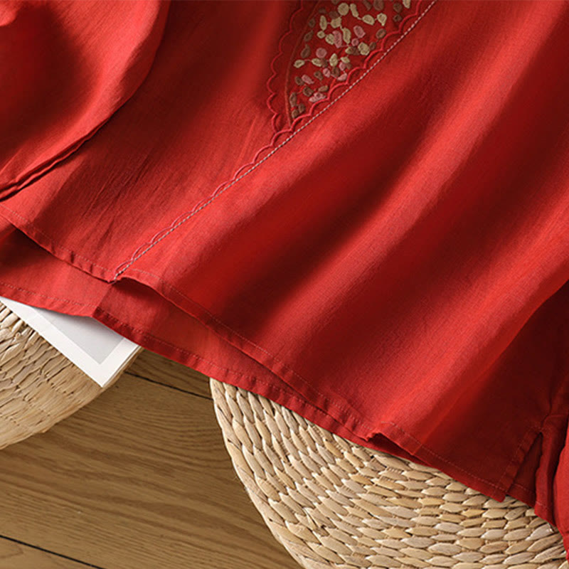Buddha Stones Ethnic Embroidery Crew Neck Cotton Linen Pullover Clothing - Red - US8-10,UK/AU12-14,EU40-42 (2XL) - image 11