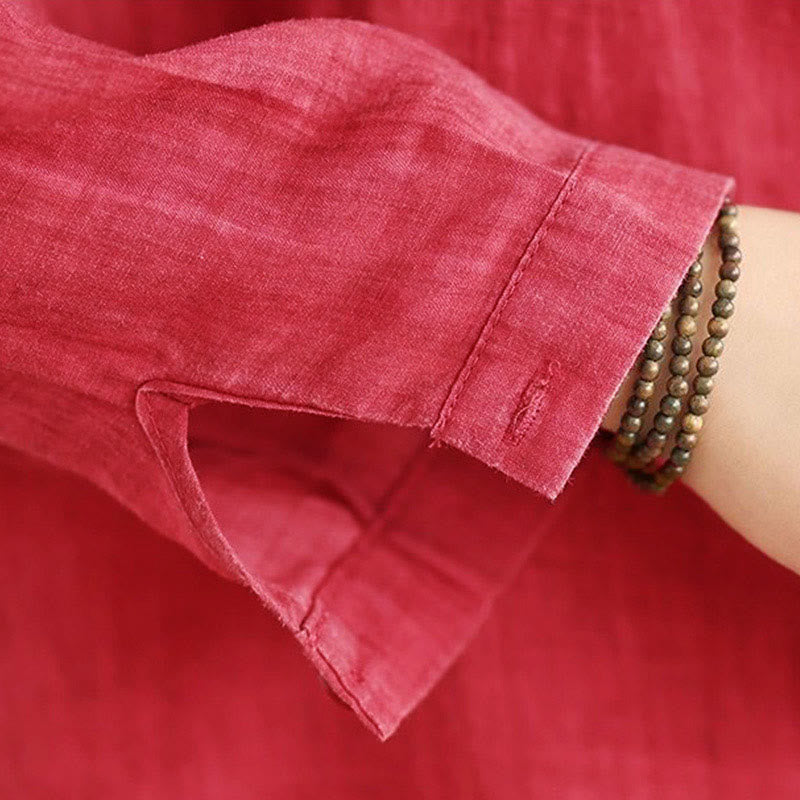 Buddha Stones Irregular Design Buttons Long Sleeve Women's Cotton Shirt - image 17