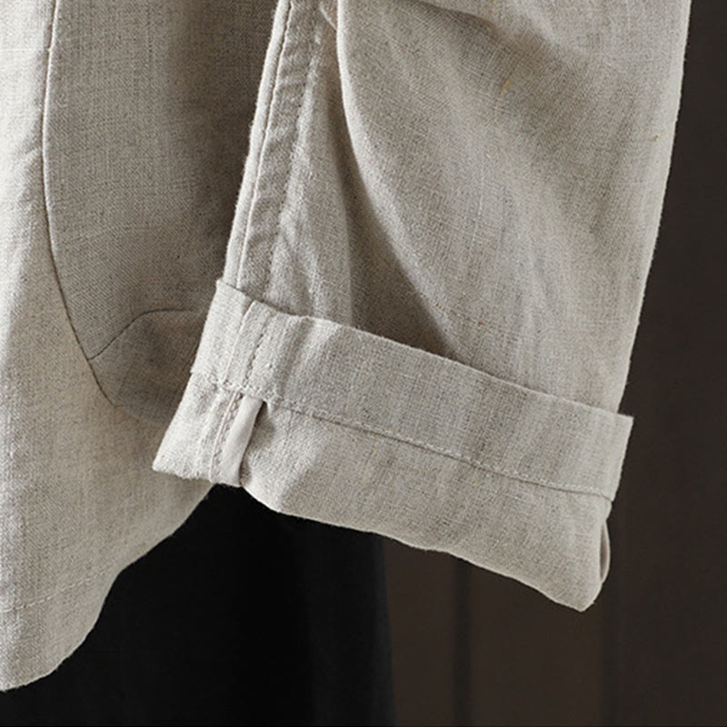 Buddha Stones Pure Color V-neck Women's Cotton Jacket With Pockets - Beige - US14,UK/AU18,EU46 (2XL) - image 0