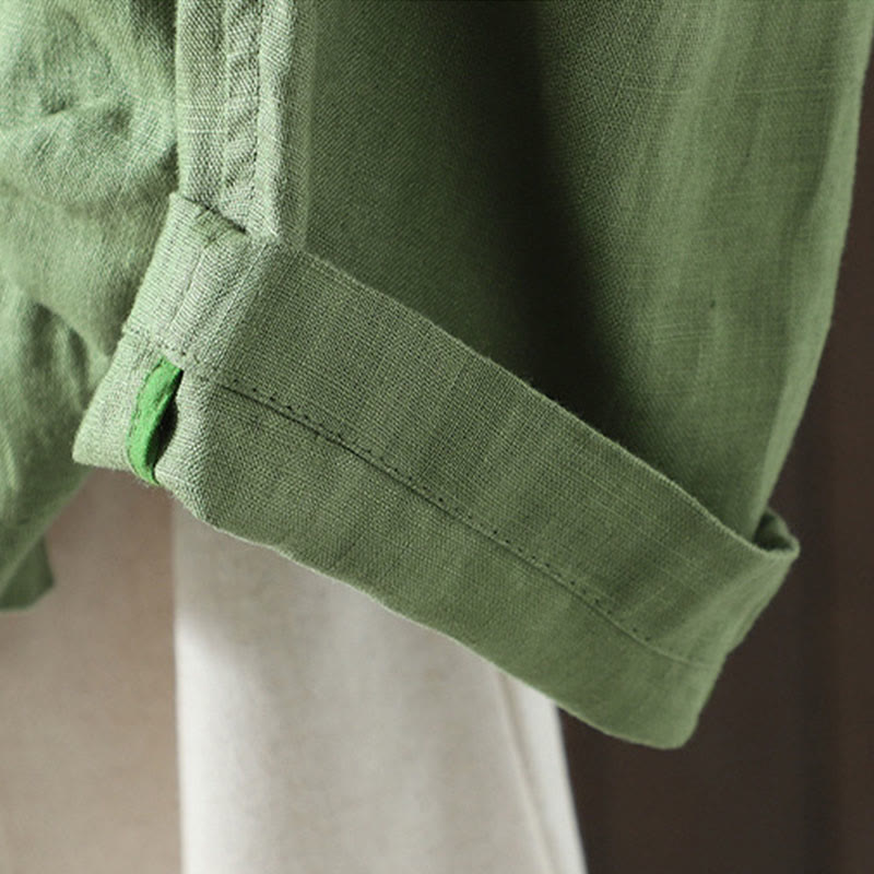 Buddha Stones Pure Color V-neck Women's Cotton Jacket With Pockets - image 20