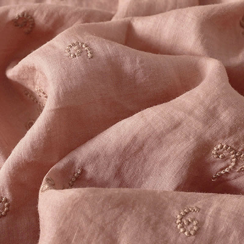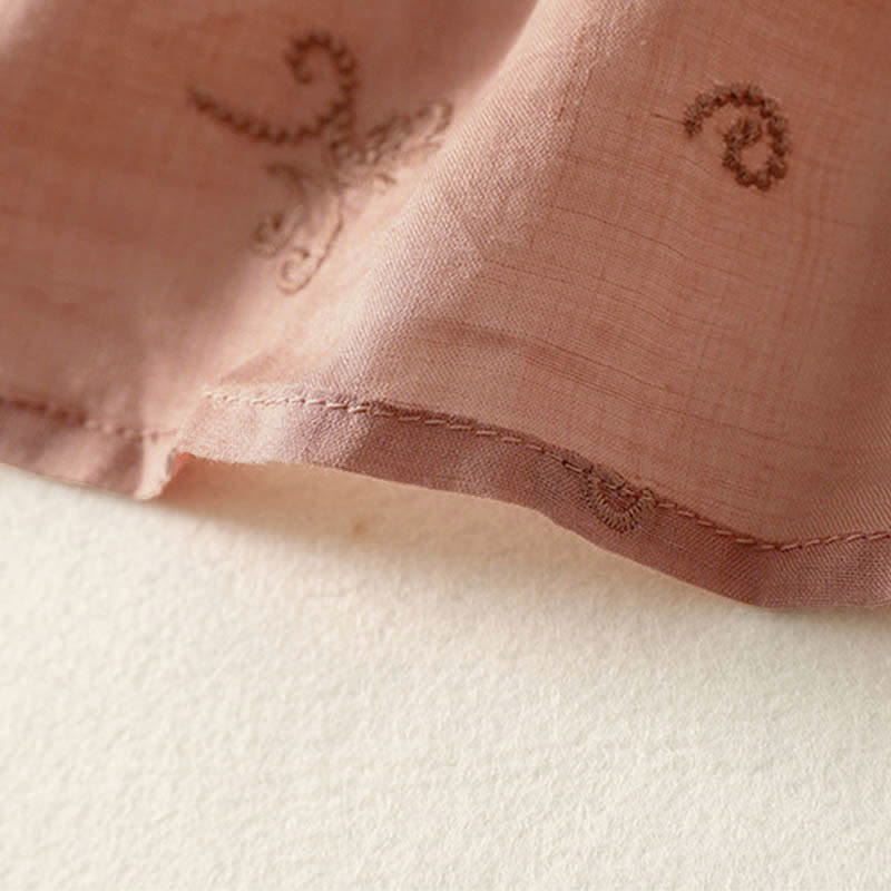Buddha Stones Retro Embroidered Floral Short Sleeve Women's Buttons Shirt