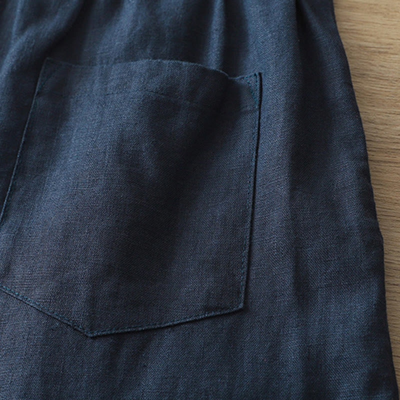 Buddha Stones Casual Retro Plain Women's Cotton Wide Leg Pants With Pockets Zipper