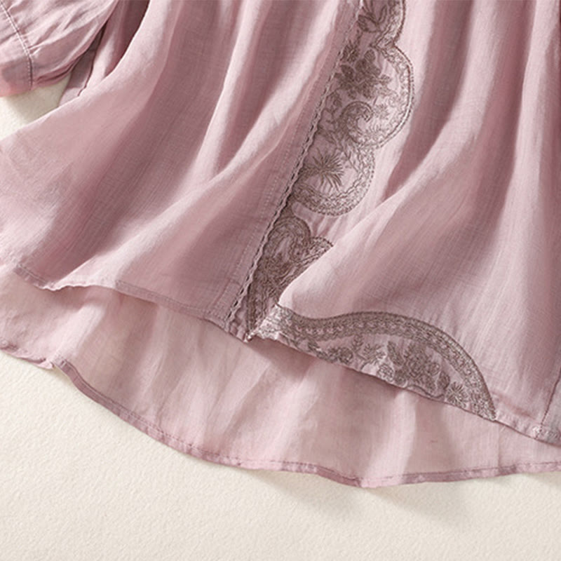 Buddha Stones Casual Embroidered Pattern Women's V-neck Design Half Sleeve Cotton Linen T-shirt - image 12