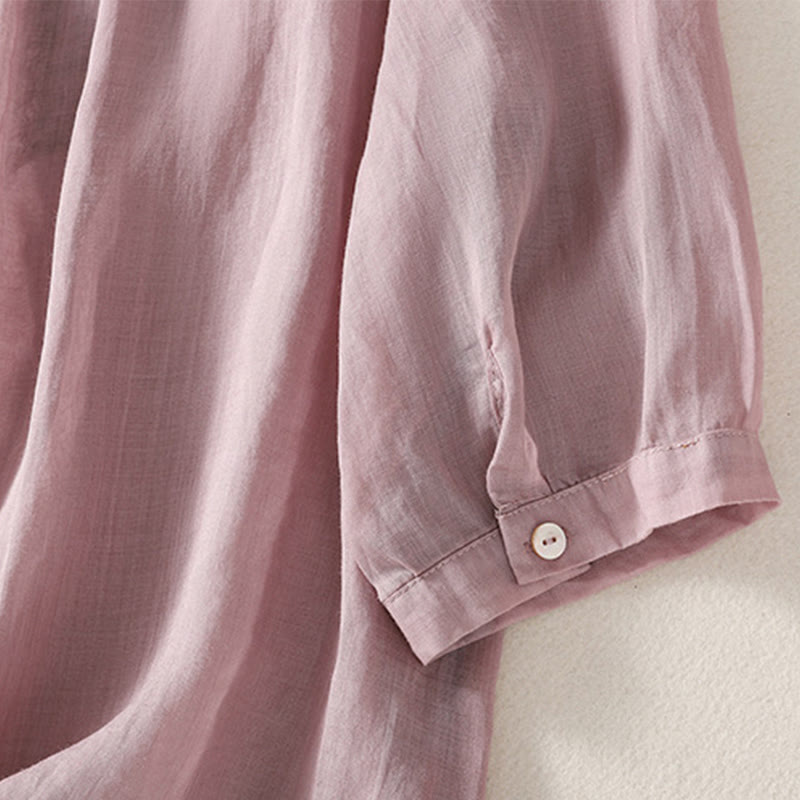 Buddha Stones Casual Embroidered Pattern Women's V-neck Design Half Sleeve Cotton Linen T-shirt - image 20