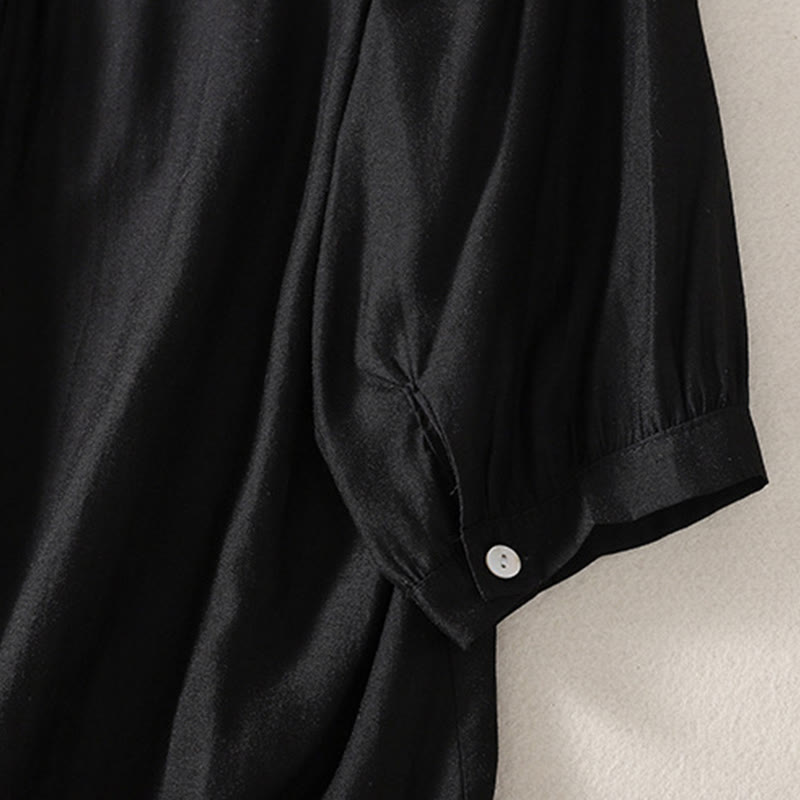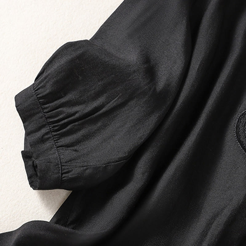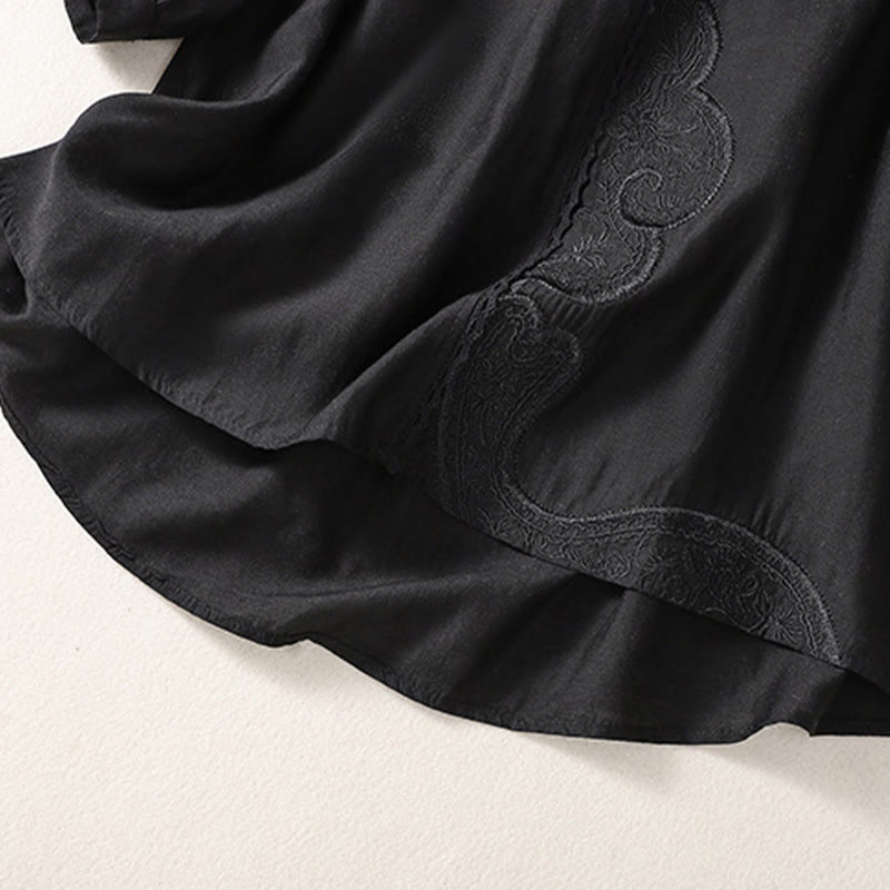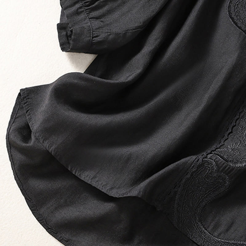 Buddha Stones Casual Embroidered Pattern Women's V-neck Design Half Sleeve Cotton Linen T-shirt - Black - US14,UK/AU18,EU46 (2XL) - image 5