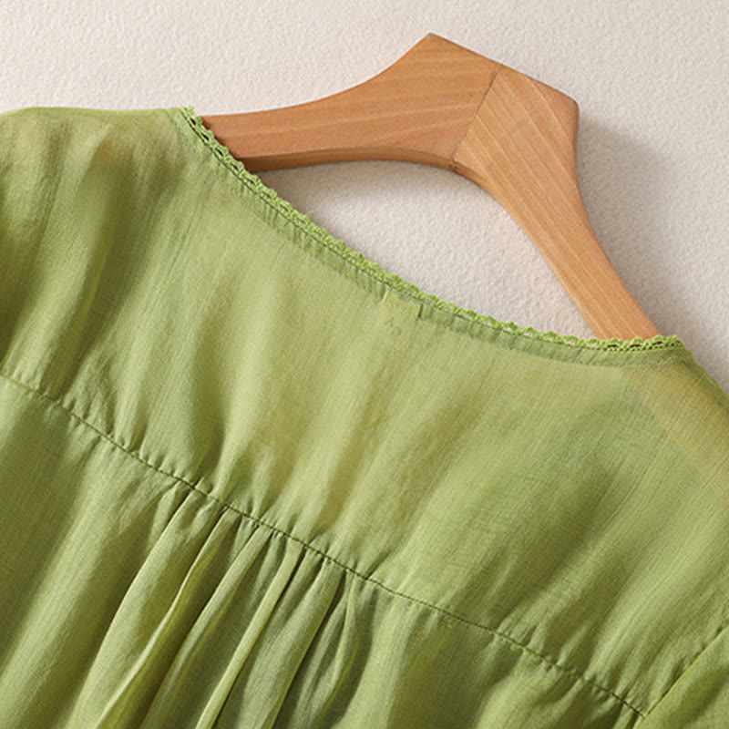 Buddha Stones Casual Embroidered Pattern Women's V-neck Design Half Sleeve Cotton Linen T-shirt - YellowGreen - US14,UK/AU18,EU46 (2XL) - image 13