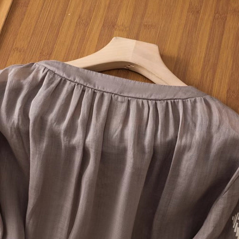 Buddha Stones Casual Symmetrical Embroidery Women's Crew Neck Design Half Sleeve Spandex T-shirt - Beige - US14,UK/AU18,EU46 (4XL) - image 33