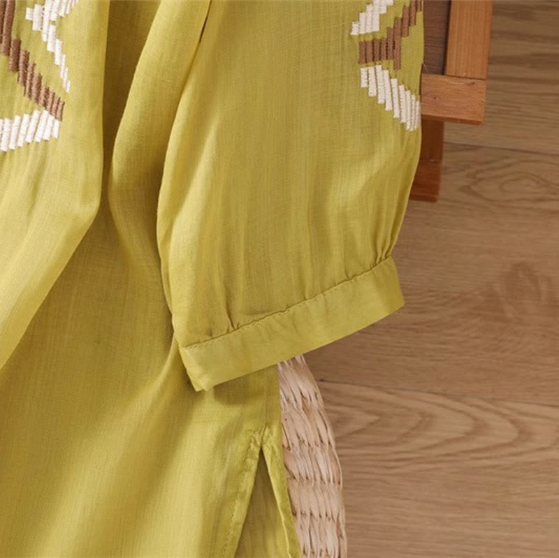 Buddha Stones Casual Symmetrical Embroidery Women's Crew Neck Design Half Sleeve Spandex T-shirt - Khaki - US14,UK/AU18,EU46 (4XL) - image 24