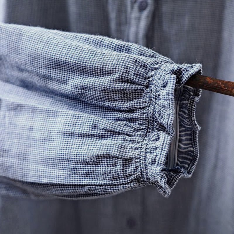 Buddha Stones Fall Small Plaid Button Down Ruffle Collar Long Sleeve Women's Cotton Shirt - LightGrey - US6,UK/AU10,EU38 (L) - image 15