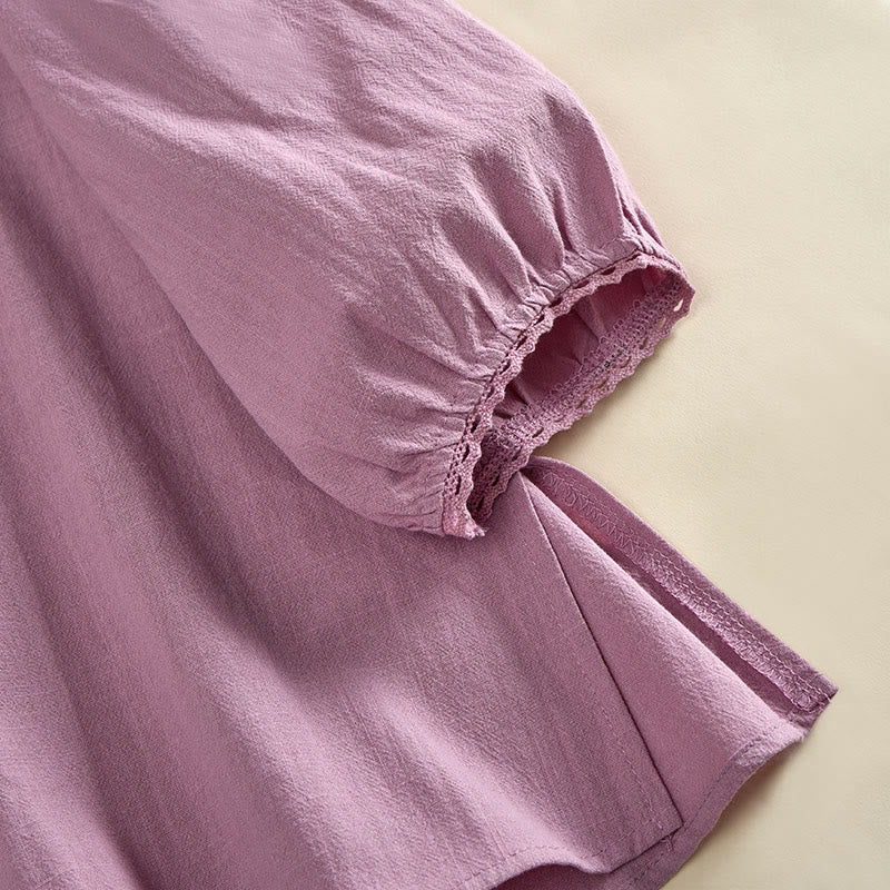 Buddha Stones Plain Crew Neck Frog-Button Long Sleeve Women's Cotton Shirt