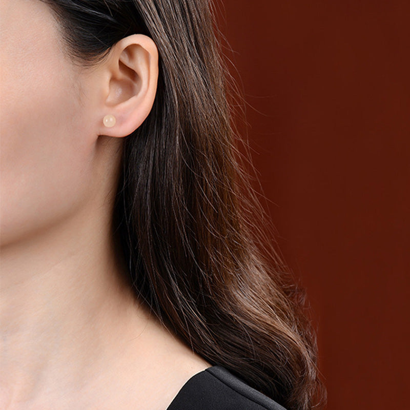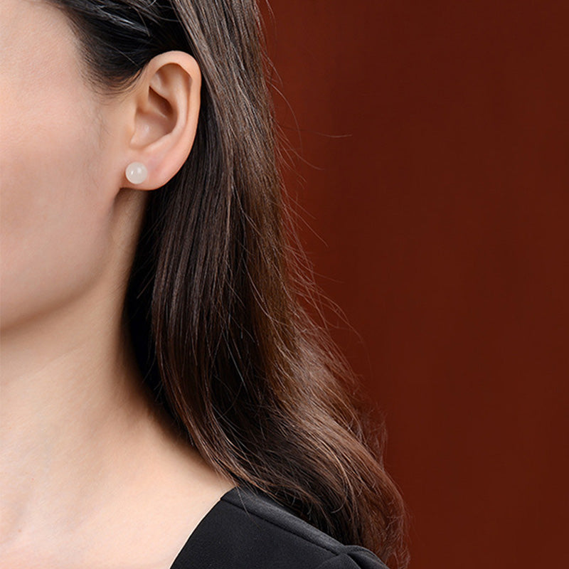 Buddha Stones 925 Sterling Silver Round White Jade Blessing Stud Earrings