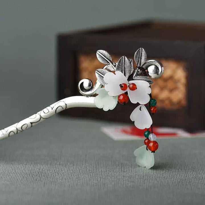 Red Agate Flower Leaf Calm Confidence Tassel Hairpin