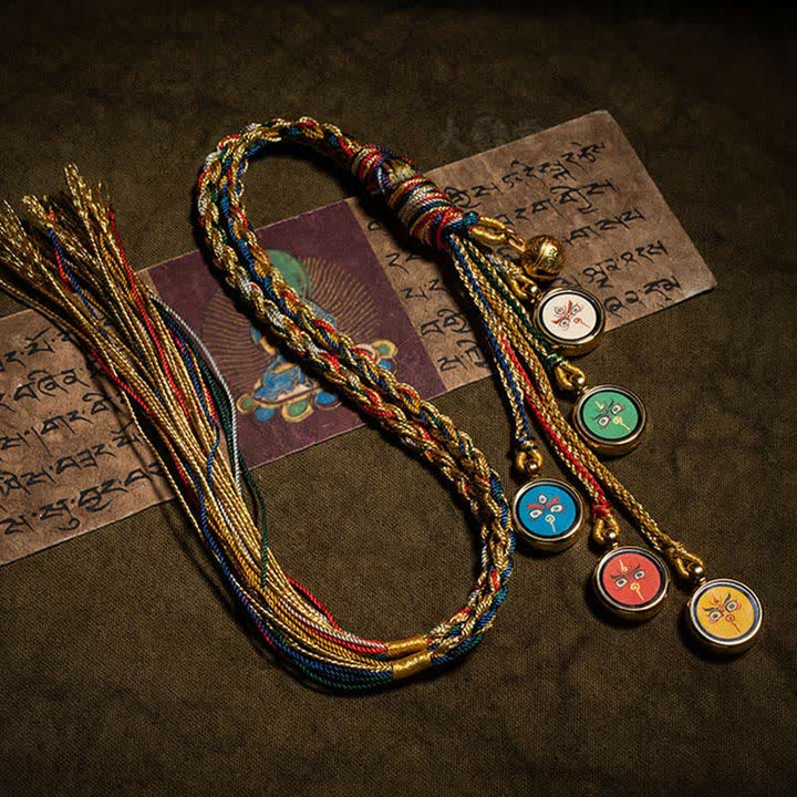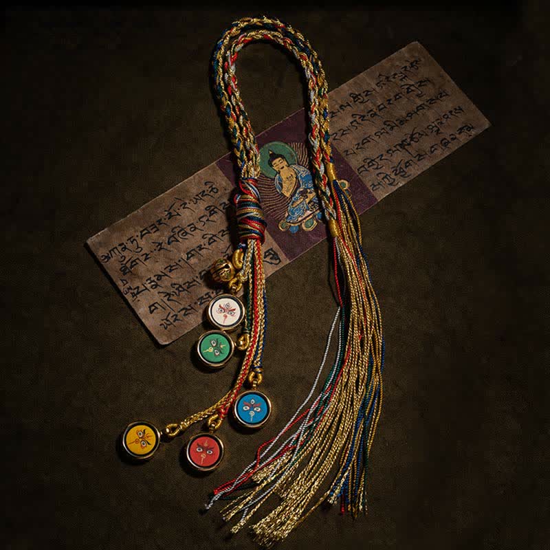 The Thangka on the necklace depicts the Five Gods of Wealth, which are as follows: