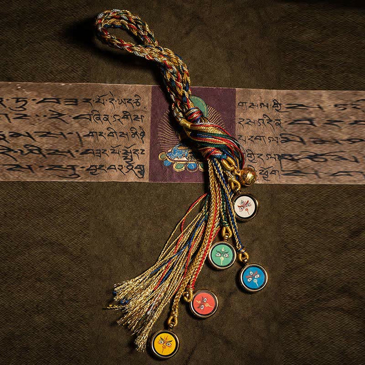 Tibet Handmade Five God Of Wealth Thangka Protection Wall Car Hanging Decoration