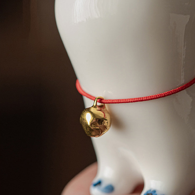 Buddha Stones Mini Lucky White Cat Kitten Tea Pet Ceramic Home Desk Figurine Decoration - White Kitten(Bell Style) 8.9cm*3.7cm*7.6cm - image 0