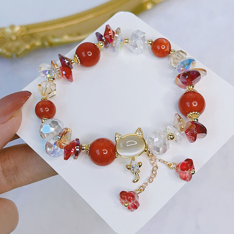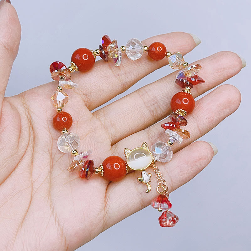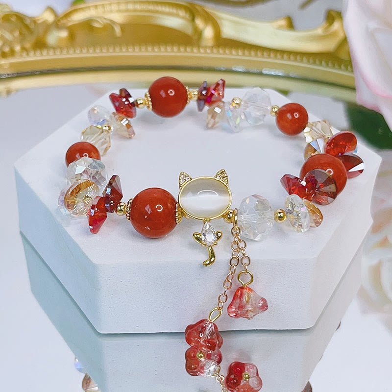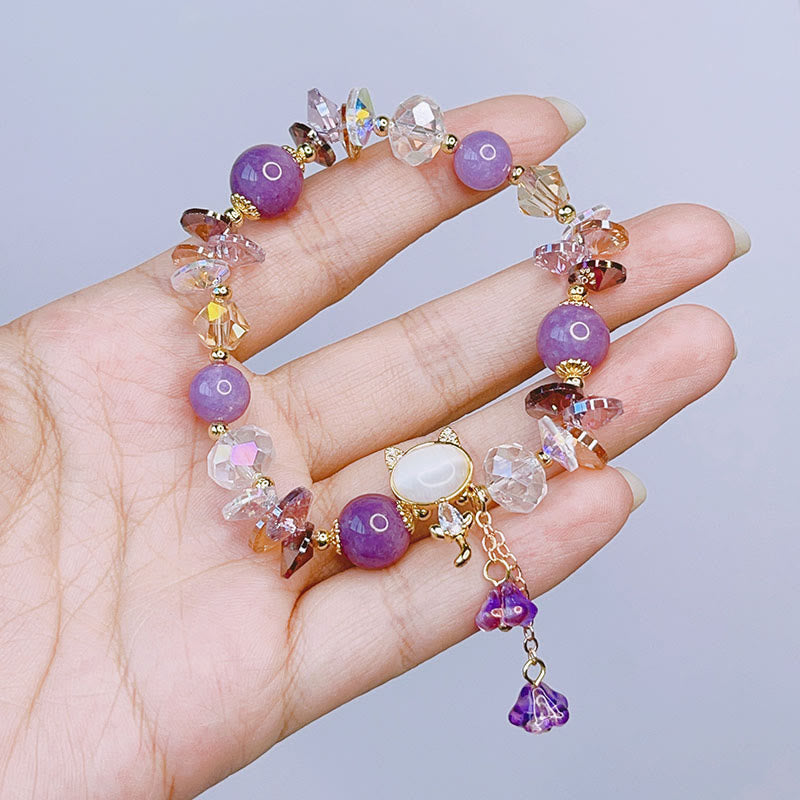 Buddha Stones Amethyst Green Crystal Red Crystal Cat Balance Bracelet