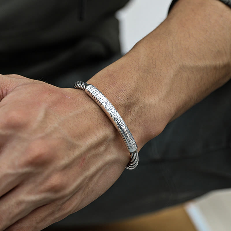 Buddha Stones 999 Sterling Silver Six True Words Heart Sutra Protection Bracelet Bangle Bracelet Cuff Bangle BS 1